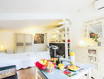 1 rom etromsleilighet 36 m2, på bakkeplan, beliggenhet mot sør-vest. Passer for 2 voksne + 2 barn. Renovert i 2015, vakkert møbler: stue/spisestue med, 1 dobbel sovesoffa (140 cm, lengde 190 cm), 1 dobbeltseng (140 cm, lengde 190 cm), TV og internasjonale TVkanaler (flatskjerms TV). Utgang til terrassen. Kjøkkenkrok (3 kokeplater, ovn, frys, elektrisk kaffemaskin, Internet(Nespresso), ekstra). Dusj, sep. WC. Airconditioning, varmluftsoppvarming. Terrasse 15 m2, hage 200 m2. Terrassemøbler, grill, liggestoler (2). Vakker utsikt av hagen. Fasiliteter: safe. Internett (trådløs LAN [WLAN], gratis). Vennligst merk: 1 lite kjæledyr / liten hund tillatt. Røykvarsler. 83065000002 FU En dusj er til stede, og daglig rengjøring under dusjen tar ikke mye tid, så mer er igjen for ferien. Ikke bare er kjæledyr tillatt her, men deres hund er også en velkommen gjest. Den undertrykkende varmen kan legge stor belastning på kropp og sinn. Derfor er lokalene utstyrt med air condition. En terrasse er tilgjengelig. Egnet for grilling. Det er en parkeringsplass. En internettforbindelse er tilgjengelig.- fasiliteter
