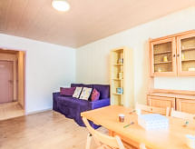 1 rom etromsleilighet 25 m2 i 2nd etasje. Praktiskt møbler: stue/spisestue med, 1 uttrekkbar seng (2 pers. 2 x 80 cm, lengde 190 cm), TV (flatskjerms TV). Inngang med, 2 neddragbare klappsenger (80 cm, lengde 190 cm). Kjøkken/stue (ovn, oppvaskmaskin, 4 keramiske kokeplater, mikrobølgeovn). Bad, sep. WC. Liten balkong, beliggenhet mot sør. Utsikt av fjellene. Fasiliteter: Internett (trådløs LAN [WLAN], ekstra). Vennligst merk: røykfri bolig. Røykvarsler. Residence. Et badekar er tilgjengelig. I komplekset av denne ferieboligen er det direkte en restaurant. Praktisk med heisen til inngangsdøren. Finn ut om det eksisterende TV-apparatet. Om lokale nyheter eller internasjonale nyheter, med fjernsynet er du alltid godt informert.- Kjennetegn ved boligen