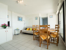Residens "Le Sunset/Cap Sud". I området Rochelongue, 230 m fra sjøen, 230 m fra stranden. Fellesbruk: hage (inngjerdet), 1 badebasseng (12 x 6 m, dybde 40- 175 cm dyp, Sesongåpent: 01.Jul. - 31.Aug.). Lekeplass. I anlegget: heis. Offentlig parkering 50 m på veien. Butikk, daglivarehandel, restaurant 350 m, bakeri 110 m, sandstrand "Rochelongue" 230 m. Sporthavn 3 km, golfbane(27 hull) 1.5 km, tennis 3 km, rideskole 1.4 km. Attraksjoner i nærheten: Aqualand 1.7 km, Ile des Loisirs 1.9 km, Musée de l'Ephèbe 3 km, Casino 2.5 km, Luna Park 2.4 km, Accrobranche 4.7 km. Du kan ikke beskrive surfing. Du må oppleve surfing. Her er muligheten. Spill golf! Med et ekspressivt landskapsgrunnlag i bakgrunnen vil din golfglede bli beriket med bare en fasett. Golfbaner er tilgjengelig.Interior