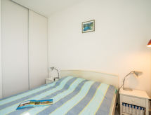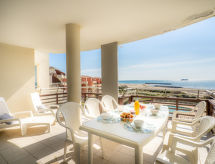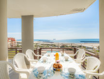 3 rom leilighet 53 m2 i 4th etasje, beliggenhet mot sør. Stue/spisestue med, 1 dobbel sovesoffa (130 cm, lengde 200 cm), TV (flatskjerms TV). 2 rom, hvert rom med, 1 dobbeltseng (140 cm, lengde 190 cm). Kjøkken (ovn, oppvaskmaskin, 4 keramiske kokeplater, mikrobølgeovn, frys, elektrisk kaffemaskin). Dusj, bidé sep. WC. El-oppvarming. Terrasse 20 m2. Terrassemøbler, liggestoler. Meget vakker utsikt av havet. Fasiliteter: vaskemaskin, strykejern. Internett (trådløs LAN [WLAN], ekstra). Vennligst merk: ingen parkeringsplass. Røykvarsler. Residence. Objekt med heis. Med inngjerdet tomt. Overrasket med en fantastisk utsikt over havet. På lekeplassen kan barna la av damp. Det er en barneseng. Takket være vaskemaskinen finner du mindre klær å bære.- Kjennetegn ved boligen