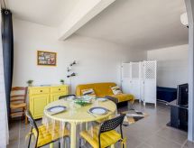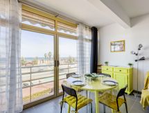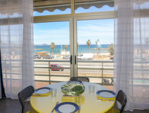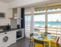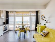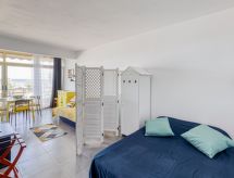 1 rom etromsleilighet 20 m2 i 1st etasje. Renovert i 2021, vakkert møbler: stue/spisestue med panoramavindu med, 1 dobbeltseng (1 x 140 cm, lengde 190 cm), TV (flatskjerms TV), air-conditioning. Kjøkkenkrok (oppvaskmaskin, 4 induksjonskomfyr, brødrister, vannkoker, mikrobølgeovn, frys, elektrisk kaffemaskin). Dusj/WC. Vakker utsikt av havet. Fasiliteter: vaskemaskin, strykejern, hårføner. Internett (trådløs LAN [WLAN], ekstra). Parkeringsplass plass nr 37 (inngjerdet, 1 Bil). Vennligst merk: leilighet vendt mot veien. 1 lite kjæledyr / liten hund tillatt. Bare TV FR. Røykvarsler. Ferieboligen har en passasjerheis. Dessuten er de bortskjemt med en klar utsikt over havet. Finn ut om det eksisterende TV-apparatet. Om lokale nyheter eller internasjonale nyheter, med fjernsynet er du alltid godt informert.- Kjennetegn ved boligen