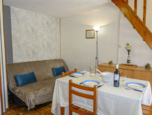 Residens "Les Amandines". I området, 1 km fra sentrum, 2 km fra sjøen. Fellesbruk: 1 badebasseng (9 x 19 m, dybde 100- 200 cm dyp, Sesongåpent: 01.Jun. - 30.Sep.). Parkering. Butikk 100 m, supermarked 500 m, restaurant, bar 100 m, sandstrand "du Grazel", offentlig badeområde 200 m. Tennis 800 m. Attraksjoner i nærheten: Réserve Africaine de Sigean 29 km. Vennligst merk: nøkkelleveringen skjer i Interhome i Narbonne Plage, 10 km. Bildet er et eksempel. For å bli kjent med regionen anbefaler vi en rolig hestetur. Hestevenner er velkomne på Gruissan.Interior