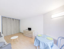 1 rom etromsleilighet 30 m2, på bakkeplan. Enkelt og komfortabelt møbler: stue/spisestue med panoramavindu med, 1 dobbel sovesoffa (1 x 160 cm, lengde 200 cm), TV (flatskjerms TV), el-radiator og vifte. Utgang til terrassen. Lite kjøkken (ovn, 2 induksjonskomfyr, brødrister, vannkoker, mikrobølgeovn, frys, elektrisk kaffemaskin, Internet(Senseo), ekstra). Bad/WC. Terrasse 7 m2. Terrassemøbler. Fasiliteter: vaskemaskin, strykejern, hårføner. Internett (trådløs LAN [WLAN], ekstra). Parkeringsplass plass nr 137 (1 Bil). Vennligst merk: 1 lite kjæledyr / liten hund tillatt. Bare TV FR. Røykvarsler. Residence. Her hvor hunder er tillatt og velkomne gjester er fine. Ferieboligen har en passasjerheis. Det er en parkeringsplass. Finn ut om det eksisterende TV-apparatet. Om lokale nyheter eller internasjonale nyheter, med fjernsynet er du alltid godt informert.- Kjennetegn ved boligen