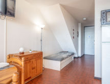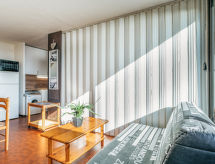 1 rom leilighet 45 m2 i 6th etasje. Stue/spisestue med forheng med, 1 dobbel sovesoffa (1 x 140 cm, lengde 190 cm), 1 uttrekkbar seng (2 pers. 2 x 80 cm, lengde 190 cm), TV (flatskjerms TV). Utgang til terrassen. Kjøkkenkrok (4 kokeplater, miniovn, brødrister, mikrobølgeovn, elektrisk kaffemaskin). Sittebadekar, sep. WC. Terrasse 10 m2. Terrassemøbler. Meget vakker utsikt av havet. Fasiliteter: vaskemaskin. Internett (trådløs LAN [WLAN], ekstra). Parkeringsplass. Vennligst merk: røykvarsler. Objekt med heis.- Kjennetegn ved boligen