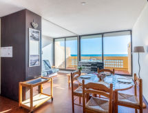 Residens "Les Argonautes", med 7 etasjer. I området La Grande Plage, 50 m fra sjøen, 50 m fra stranden, direkte tilgang til stranden. Fellesbruk: 1 badebasseng firkantet (25 x 11 m, dybde 150- 220 cm dyp, Sesongåpent: 01.Jun. - 30.Sep.). I anlegget: heis. Parkering. Butikk, daglivarehandel 80 m, supermarked 5 km, kjøpesenter, restaurant, bar, bakeri, café 80 m, område bare for gående 50 m, sykkelutleie 80 m, bussholdeplass "La Grande Plage" 80 m, togstasjon "La Franqui" 20 km, dykkesenter 5 km, utendørs svømmebasseng 7 km, nudiststrand 10 km. Sporthavn 7 km, seileskole 3 km, tennis 3 km, minigolf 4 km. Attraksjoner i nærheten: Aqualand Port Leucate 5 km, Réserve Africaine de Sigean 41 km, Fort de Salses 20 km, Narbonne 55 km, Perpignan 25 km, Barcelone 215 km. Velkjente innsjøer: Etang de Leucate ou Salses 7 km, Lac de Villeneuve de La Raho 28 km. Turstier Sentier du guetteur 8 km, Station meteorologique de Opoul Perillos 25 km, Sentier du littoral Collioure 40 km. Vennligst merk: heis til 6th etasje. For å bli kjent med regionen anbefaler vi en rolig hestetur. Hestevenner er velkomne på Le Barcarès.Interior