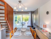3 rom rekkehus 38 m2. Stue/spisestue med, TV (flatskjerms TV). Utgang til hagen. Kjøkkenkrok (ovn, 2 induksjonskomfyr, brødrister, vannkoker, mikrobølgeovn, elektrisk kaffemaskin). øverste etasje: 1 rom med, 1 dobbeltseng (1 x 140 cm, lengde 190 cm). 1 rom med, 1 x 2 køysenger (90 cm, lengde 190 cm). Dusj/WC. Hage 20 m2. Terrassemøbler, grill. Fasiliteter: vaskemaskin. Internett (trådløs LAN [WLAN], gratis). Parkeringsplass. Vennligst merk: røykvarsler. Tilbud fra en privatperson i henhold til art. 155, IV av CGI. En ovn er tilgjengelig.- fasiliteter