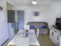 Residens "Les Capounades", med 4 etasjer. 100 m fra sentrum av de Narbonne-Plage, 200 m fra sjøen, 200 m fra stranden. Offentlig parkering 50 m. Butikk, daglivarehandel, restaurant, bar 100 m, dykkesenter 2 km. Sporthavn 2 km, rideskole 5 km. Attraksjoner i nærheten: Réserve Africaine de Sigean 33 km, Cité de Carcassonne 73 km, Espace balnéoludique de Gruissan 6 km. Et ekstraordinært område hvor du kan sykle godt. Ridevenner er i gode hender her.Interior