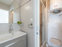 2 rom leilighet 25 m2, på bakkeplan. Stue/spisestue med, 1 dobbel sovesoffa (1 x 140 cm, lengde 190 cm), TV (flatskjerms TV). Utgang til loggiaen. 1 rom med 2 senger (80 cm lengde 190 cm). Kjøkkenkrok (stekeovn, oppvaskmaskin, 2 keramiske kokeplater, mikrobølgeovn, elektrisk kaffemaskin). Dusj/WC. El-oppvarming. Terrasse 5 m2, beliggenhet mot nord-vest. Terrassemøbler. Fasiliteter: vaskemaskin, tørketrommel. Internett (trådløs LAN [WLAN], ekstra). Parkeringsplass. Vennligst merk: leilighet vend mot parkeringsplassen. Kjæledyr / hund tillatt 1 kjæledyr / hund tillatt. Røykvarsler. Residence. En tørketrommel er tilgjengelig.- Kjennetegn ved boligen