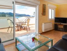 "Les Carboneres", 4 rom rekkehus 115 m2 på 3 etasjer. Praktiskt møbler: stue/spisestue 28 m2 med, satelit-TV, digital TV og internasjonale TVkanaler (flatskjerms TV), air-conditioning og motoriserte persienner. Utgang til terrassen. Kjøkken (3 kokeplater, stekeovn, mikrobølgeovn, frys, elektrisk kaffemaskin). Sep. WC. I underetasje: 1 rom med, 1 dobbeltseng (1 x 135 cm), motoriserte persienner. Utgang til terrassen. 1 rom med, 1 uttrekkbar seng (2 pers. 2 x 90 cm), motoriserte persienner. Utgang til terrassen. Bad/bidé/WC. øverste etasje: 1 rom med, 1 dobbeltseng (1 x 135 cm), motoriserte persienner. Utgang til terrassen. Terrasse 18 m2, 2 terrasser 20 m2. Terrassemøbler, liggestoler (2). Meget vakker utsikt av havet, fjellene, området og havnen. Fasiliteter: vaskemaskin. Velegnet for familier. Kjæledyr / hund tillatt 1 kjæledyr / hund tillatt. HUTG019278 Bad i huset. Det er en overbygd parkeringsplass. Takket være vaskemaskinen finner du mindre klær å bære. Hva ville et moderne kjøkken være uten mikrobølgeovn? Den som selvfølgelig er tilgjengelig.- fasiliteter