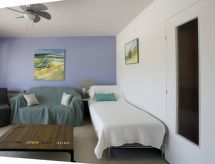 2 rom leilighet 45 m2 i 3rd etasje. Lys, komfortabelt møbler: stue/spisestue med, 1 dobbel sovesoffa (140 cm, lengde 190 cm), TV (flatskjerms TV). Utgang til terrassen. 1 rom med, 1 dobbeltseng (140 cm, lengde 190 cm). Utgang til terrassen. Kjøkken (4 kokeplater, stekeovn, brødrister, vannkoker, mikrobølgeovn, frys, elektrisk kaffemaskin). Dusj/WC. El-oppvarming. Terrasse 10 m2, beliggenhet mot nord. Ved siden utsikt av havet. Fasiliteter: vaskemaskin, hårføner. Internett (trådløs LAN [WLAN], ekstra). Parkeringsplass plass nr 7. Vennligst merk: leilighet vendt mot veien. Røykfri bolig. Bare TV FR. Røykvarsler. 83070001496CQ Huset er også utstyrt med en ovn.- Kjennetegn ved boligen