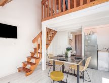 2 rom leilighet 30 m2 på 2 etasjer i 1st etasje. Fullstendig renovert i 2021, komfortabelt og vakkert møbler: stue/spisestue med, TV (flatskjerms TV). Utgang til balkongen. 1 rom med, 1 dobbeltseng (1 x 140 cm, lengde 190 cm). Lite, åpent kjøkken (ovn, 3 induksjonskomfyr, brødrister, mikrobølgeovn, frys, elektrisk kaffemaskin). Dusj/WC. øverste etasje: 1 åpent rom med, 1 dobbeltseng (1 x 160 cm, lengde 190 cm). El-oppvarming. Balkong 6 m2. Balkongmøbler. Utsikt av området. Fasiliteter: vaskemaskin. Internett (trådløs LAN [WLAN], gratis). USB-stick (gratis). Parkeringsplass plass nr 37 (1 Bil). Vennligst merk: røykvarsler. Residence. En balkong er tilgjengelig.- Kjennetegn ved boligen