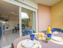 Residens "Les Goelettes", med 3 etasjer. I området 3.7 km fra sentrum av Saint Cyprien Port, 150 m fra sjøen, 100 m fra stranden, direkte tilgang til stranden. Fellesbruk: hage (inngjerdet), 1 badebasseng (25 x 12 m, dybde 120- 220 cm dyp, Sesongåpent: 15.Jun. - 15.Sep.). Barnebasseng. I hbrukt: heis. Butikk 2 km, daglivarehandel 100 m, supermarked 3 km, restaurant 900 m, togstasjon "Elne" 8 km, småstenstrand "Plage Sud" 100 m. Sporthavn 3.5 km, golfbane(27 hull) 7 km, seileskole 3.3 km, minigolf 5.5 km, rideskole 3.3 km, idrettsenter 2 km. Attraksjoner i nærheten: Aqualand 1.7 km. Vennligst merk: Det er flere lignende leiligheter i samme hus.Interior
