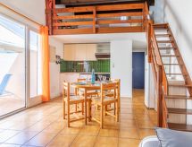 Residens "Les Leucatines 3". 400 m fra sjøen, 350 m fra stranden. I anlegget: parkering. Kjøpesenter, restaurant 400 m. Tennis 200 m. Attraksjoner i nærheten: Réserve Africaine de Sigean 35 km, Aqualand 2 km, parcours aventure 2 km, cinéma 2 km, site des dosses 3 km. Velkjente innsjøer: Lac de villeneuve de la Raho 36 km, Lac de leucate 7 km, Lac de salses 7 km. Turstier Sentier du guetteur 12 km, la forteresse de salses 22 km, Sentier du littoral Collioure 49 km. Vennligst merk: Bildet er et eksempel. Du kan ikke beskrive surfing. Du må oppleve surfing. Her er muligheten.Interior