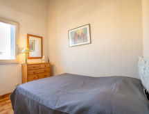 2 rom leilighet 35 m2 i 2nd etasje. Stue/spisestue med, 1 dobbel sovesoffa og TV. Utgang til balkongen. 1 rom med, 1 dobbeltseng (140 cm, lengde 190 cm). Alkove med, 1 x 2 køysenger (90 cm, lengde 190 cm). Kjøkkenkrok (2 kokeplater, ovn, mikrobølgeovn). Bad, sep. WC. Balkong 4 m2, beliggenhet mot sør-øst. Terrassemøbler. Utsikt av havnen. Fasiliteter: vaskemaskin. Internett (trådløs LAN [WLAN], ekstra). Parkeringsplass. Vennligst merk: max kjæledyr / hund tillatt 1 kjæledyr / hund tillatt. Røykvarsler. Bad i huset. Skal den kjære hunden bli plassert i et dyreslag i ferien? Nei, de firebenede vennene tilhører familien, og uten ham er en perfekt ferie praktisk talt utenkelig og derfor velkommen her. Det er en balkong.- Kjennetegn ved boligen