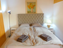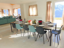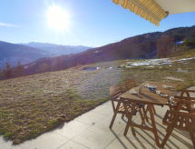 6 rom hus 200 m2 på 2 etasjer. Passer for 8 voksne + 4 barn. Romlig og lys, delvis renovert i 2021, meget komfortabelt og vakkert møbler: stor stue/spisestue med, åpen peis og digital TV. Utgang til hagen, til terrassen, beliggenhet mot sør. 1 stort barnerom beliggenhet mot øst med, 2 x 2 køysenger (90 cm, lengde 200 cm). Åpent kjøkken (ovn, oppvaskmaskin, 4 induksjonskomfyr, brødrister, vannkoker, mikrobølgeovn, frys (ost)). Utgang til terrassen, beliggenhet mot vest. Dusj/WC. øverste etasje: 1 rom med, 1 dobbeltseng (180 cm, lengde 200 cm), dusj/WC. Utgang til balkongen, beliggenhet mot sør. 1 rom beliggenhet mot nord med, 1 dobbeltseng (160 cm, lengde 200 cm), bad/WC. 1 rom beliggenhet mot nord med 2 senger (90 cm lengde 190 cm), bad/WC. 1 rom beliggenhet mot nord-øst med 2 senger (90 cm lengde 190 cm), bad/WC. Stor terrasse. Terrassemøbler. Hærlig utsikt av fjellene og dalen. Fasiliteter: vaskemaskin, tørketrommel, strykejern, høy barnestol barneseng for barn opp til 2 år, hårføner. Internett (trådløs LAN [WLAN], gratis). Garasje, høyde 196 cm, bredde 238 cm. Vennligst merk: velegnet for familier. Røykfritt hus. Det er en røykfri eiendom, vennligst hold deg til den. En oppvaskmaskin er tilgjengelig.- Kjennetegn ved boligen