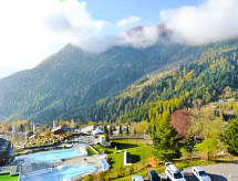 "Les Sources 4109", 1 rom etromsleilighet 33 m2 i 1st etasje, beliggenhet mot sør. Lys, komfortabelt og smakfullt møbler: stue/soverom med, 2 skapsenger (90 cm, lengde 190 cm), kabel-TV og flatskjerms TV. Utgang til balkongen. Kjøkkenkrok (4 kokeplater, ovn, oppvaskmaskin, mikrobølgeovn, elektrisk kaffemaskin, Internet(Nespresso), ekstra, raclettegrill (chinoise, ost)) med spisebord. Bad/WC. Balkong 11 m2, beliggenhet mot sør. Balkongmøbler, liggestoler (2). Meget vakker panoramautsikt av dalen og svømmebassenget. Fasiliteter: safe, strykejern, hårføner. Internett (trådløs LAN [WLAN], gratis). Garasje plass nr C11. Vennligst merk: røykfri bolig. En restaurant er innlemmet i feriebransjen. Eiendommen er utstyrt med solarium. For ditt velvære, nyt boblebadet i ferien. Metabolismen din kommer opp i fart i varmen fra den eksisterende badstuen. Huset er også utstyrt med et basseng. Det er et innendørsbasseng. Hvis været ikke spiller, er det også en TV. Den har en komfyr.- Kjennetegn ved boligen
