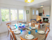5 rom hus 100 m2 på 2 etasjer. Fullstendig renovert i 2015: stue/spisestue med, TV (flatskjerms TV). 1 rom med, 1 dobbeltseng (140 cm). 1 rom med 2 senger (80 cm). Åpent kjøkken (4 kokeplater, stekeovn, oppvaskmaskin, mikrobølgeovn, frys). Dusj/WC. øverste etasje: 1 stort rom med, 1 dobbeltseng (140 cm), 1 uttrekkbar seng (2 pers.). 1 rom med 2 senger. Dusj/WC. El-oppvarming. Terrasse dekt, beliggenhet mot sør-øst, stor hage. Terrassemøbler, grill. Fasiliteter: vaskemaskin, strykejern, høy barnestol. Internett (trådløs LAN [WLAN]). Parkeringsplass (inngjerdet). Vennligst merk: røykvarsler. NB: Sea view from 2 first floor bedrooms. There is a small fridge an an oven in an annex. Ferieeiendom inkludert hage å slappe av. Egnet for grilling. Takket være vaskemaskinen finner du mindre klær å bære.- fasiliteter