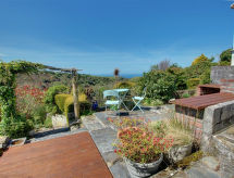 5 rom hus. Komfortabelt og vakkert møbler: stue med, kabel-TV, internasjonale TVkanaler, DVD og vedovn. 1 rom med, 1 dobbeltseng og separat WC. I underetasje: 1 rom med 2 senger. 1 rom med 1 seng. Lekerom. Kjøkken (4 kokeplater, ovn, oppvaskmaskin, mikrobølgeovn, frys) med spisebord, radio og CD-spiller. Bad/dusj/WC. El-oppvarming. Terrassemøbler, grill, drivhus. Vakker utsikt av havet. Fasiliteter: vaskemaskin, tørketrommel, høy barnestol barneseng for barn opp til 2 år. Internett (trådløs LAN [WLAN]). Parkeringsplass ved hbrukt. Vennligst merk: røykfritt hus. Utsikt over havet og beliggenheten er nydelig. En veranda er til stede. Passer til grill. Huset er også utstyrt med oppvaskmaskin. Huset er også utstyrt med en tørketrommel. Huset er også utstyrt med en DVD-spiller.- Kjennetegn ved boligen