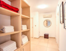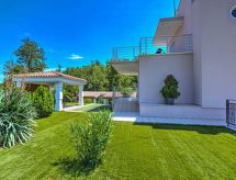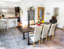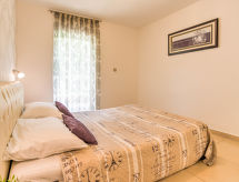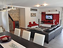 7 rom halvpart av tomannsbolig 210 m2 på 3 etasjer, beliggenhet mot vest. Moderne og smakfullt møbler: stue/spisestue 70 m2 med, satelit-TV (flatskjerms TV), DVD, vedovn og air-conditioning. Utgang til hagen, til balkongen, til badebassenget. Åpent kjøkken (ovn, oppvaskmaskin, 4 keramiske kokeplater, mikrobølgeovn, frys, elektrisk kaffemaskin). Sep. WC. I underetasje: stue/spisestue 35 m2 med, TV (flatskjerms TV). Utgang til hagen, til terrassen. Inngang med, air-conditioning. 1 rom med, 1 dobbeltseng (160 cm, lengde 200 cm). Utgang til hagen, til terrassen. 1 rom med, 1 dobbeltseng (140 cm, lengde 200 cm). Åpent kjøkken (2 kokeplater). Dusj/WC, dusj/bidé/WC. øverste etasje: inngang med, air-conditioning. 1 rom med, 1 dobbeltseng (160 cm, lengde 200 cm), dusj/WC. Utgang til balkongen. 1 rom med 2 senger (90 cm lengde 200 cm). Utgang til balkongen. 1 rom med, 1 dobbeltseng (160 cm, lengde 200 cm). Bad/bidé/WC. Airconditioning, gulvvarme. Balkong 35 m2, balkong 52 m2, terrasse 22 m2 delvis dekt. Balkongmøbler, liggestoler. Utsikt av svømmebassenget og skogen. Fasiliteter: vaskemaskin, barneseng (ekstra). Internett (trådløs LAN [WLAN], gratis). Garasje (2 Biler). Max kjæledyr/små hunder tillatt 2 kjæledyr/små hunder tillatt. Eiendommen er helt inngjerdet. For ditt velvære, nyt boblebadet i ferien. Den undertrykkende varmen kan legge stor belastning på kropp og sinn. Derfor er lokalene utstyrt med air condition. Den har en baby seng. En brannpit er tilgjengelig. Et privat basseng er tilgjengelig. Takket være vaskemaskinen finner du mindre klær å bære. Den har en DVD-spiller. Et biljardbord er tilgjengelig.- Kjennetegn ved boligen