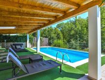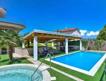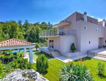 Pobri: Fin dobbelthus "Lorena", med 3 etasjer. Ovenfor Opatija 2.2 km fra sentrum av Opatija, i en roligt, solrikt posisjon, 2.3 km fra sjøen, i det grønne. Privat: tomt 500 m2 (inngjerdet) med plen 200 m2, svømmebasseng kantete (8 x 4 m, dybde 150 cm, Sesongåpent: 01.Mai. - 01.Okt.). Utendørs dusj, boblebad, tennis, lysthus (9 m2), hagemøbler, grill. I hbrukt: internetilkobbling, biljard, fotballsbord, alarm, vaskemaskin. Parkering ved hbrukt på tomten. Butikk 450 m, supermarked 1.6 km, restaurant 2.2 km, stenstrand 2.3 km, strand ved klipper 2.3 km, offentlig badeområde 2.3 km. Grupper med tenåringer- bare ved forespørsel. Det er ikke tillatt å organisere en fest. Boblebad (01.05.-01.10.). Videoovervåkning av eiendommen. Fancy fjellturer? Du er på rett sted for det. Bare sett på turskoene dine og begynn å gå. Spillbare tennisbaner er tilgjengelig for sportslige ferieuker.Interior