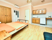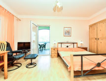 1 rom leilighet 25 m2 i 1st etasje. Vakkert møbler: 1 rom med, 1 dobbeltseng (160 cm, lengde 200 cm), spisebord, satelit-TV og air-conditioning. Utgang til terrassen. Åpent kjøkken (2 kokeplater). Dusj/WC. Terrasse 8 m2, dekt. Terrassemøbler. Vakker utsikt av havet. Fasiliteter: Internett (trådløs LAN [WLAN], gratis). Kjæledyr / hund tillatt 1 kjæledyr / hund tillatt. Overrasket med en fantastisk utsikt over havet. Huset er også utstyrt med internettforbindelse.- fasiliteter