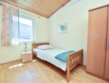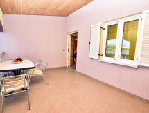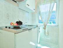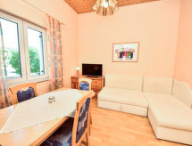 3 rom leilighet 60 m2 i 2nd etasje. Vakkert møbler: 1 rom med, 1 dobbeltseng (160 cm, lengde 200 cm), spisebord, kjøkkenhjørne og dusj/WC. 1 rom med, 1 dobbeltseng (2 x 100 cm, lengde 200 cm), dusj/WC. Stue/spisestue med, satelit-TV og air-conditioning. Åpent kjøkken (2 kokeplater). Dusj/WC. Airconditioning (ekstra). Terrasse 8 m2, dekt. Terrassemøbler. Vakker utsikt av havet. Fasiliteter: Internett (trådløs LAN [WLAN], gratis). Kjæledyr / hund tillatt 1 kjæledyr / hund tillatt. Med utsikt over havet. For å holde det kult om sommeren, har dette feriehuset aircondition. Huset er også utstyrt med barneseng. Det er en parkeringsplass.- fasiliteter