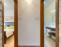 Krnica 22 km fra Pula: Fin dobbelthus "Lupetina". I det lille tettstedet Bratulići 5 km fra sentrum av Krnica, i en roligt, solrikt posisjon, 7 km fra sjøen, i en blindvei. Fellesbruk: tomt 2'000 m2 (inngjerdet). Privat: hage m2 300 ha med plen. Grill. I hbrukt: internetilkobbling, vaskemaskin. Parkering ved hbrukt på tomten. Butikk 2 km, restaurant 100 m, småstenstrand 7 km, strand ved klipper 7 km.Interior