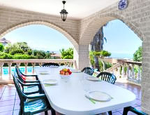 "Macedonia", 7 rom villa 500 m2. Romlig og lys, meget komfortabelt møbler: stue/spisestue med, TV. Utgang til terrassen. 1 dobblet rom med, 1 dobbeltseng (150 cm, lengde 190 cm), TV. Stort, åpent kjøkken (4 kokeplater, stekeovn, oppvaskmaskin, mikrobølgeovn, frys, elektrisk kaffemaskin) med spisebord. Dusj/bidé/WC. Oppvarmingsalternativ. øverste etasje: 2 rom, hvert rom med, 1 dobbeltseng (135 cm, lengde 190 cm). 1 rom med 1 seng (90 cm lengde 190 cm), 1 dobbeltseng (1 x 135 cm, lengde 180 cm). 1 dobblet rom med 2 senger (90 cm lengde 190 cm). 1 dobblet rom med, 1 dobbeltseng (1 x 140 cm, lengde 180 cm). 2 dusjer/bidéer/WC. Hage, plen. Terrassemøbler, grill, liggestoler, overbygd balkong. Meget vakker panoramautsikt av havet, svømmebassenget og hagen. Fasiliteter: vaskemaskin, strykejern, høy barnestol barneseng for barn opp til 2 år, hårføner. Internett (trådløs LAN [WLAN], gratis). Velegnet for familier. HUTG011493 Med utsikt over havet. Huset er også utstyrt med et privat basseng. Hvis været ikke spiller, er det også en TV.- fasiliteter