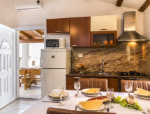 "Magdalena (IPC160)", 3 rom hus 60 m2. Stue/spisestue med, 1 dobbel sovesoffa (180 cm), satelit-TV (flatskjerms TV), air-conditioning. Utgang til terrassen. 1 rom med, 1 dobbeltseng (180 cm), dusj/WC. 1 rom med 2 senger og dusj/WC. Åpent kjøkken (1 kokeplate, ovn, 3 gassbrennere, brødrister, vannkoker, mikrobølgeovn, frys, elektrisk kaffemaskin). Grill (flyttbar), liggestoler (4). Fasiliteter: strykejern. Internett (trådløs LAN [WLAN], gratis). Vennligst merk: røykfritt hus. Max kjæledyr / hund tillatt 1 kjæledyr / hund tillatt. Eieren forbyr røyking i bygningen. Den undertrykkende varmen kan legge stor belastning på kropp og sinn. Derfor er lokalene utstyrt med air condition. Den har en terrasse. Egnet for grilling. Et privat basseng er tilgjengelig.- fasiliteter