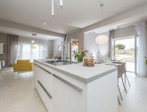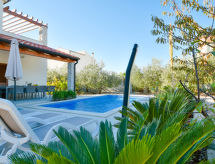 5 rom villa 170 m2 på 2 etasjer, beliggenhet mot nord-vest. Stue/spisestue 60 m2 med, satelit-TV (flatskjerms TV), air-conditioning. Utgang til terrassen. 1 rom med, 1 dobbeltseng (160 cm, lengde 200 cm), dusj/WC og air-conditioning. Åpent kjøkken (ovn, oppvaskmaskin, 4 keramiske kokeplater, mikrobølgeovn, frys, elektrisk kaffemaskin). Sep. WC. øverste etasje: inngang. Utgang til terrassen. 1 rom med, 1 dobbeltseng (160 cm, lengde 200 cm), dusj/WC og satelit-TV (flatskjerms TV), air-conditioning. Utgang til terrassen. 2 rom, hvert rom med, 1 dobbeltseng (160 cm, lengde 200 cm), air-conditioning. Dusj/WC. Gulvvarme. Terrasse 15 m2, dekt, 2 terrasser 8 m2. Terrassemøbler, liggestoler. God utsikt av havet. Fasiliteter: hårføner. Internett (trådløs LAN [WLAN], gratis). Huset er også utstyrt med en terrasse. Passer til grill. Et privat basseng er tilgjengelig. Et oppvarmet basseng er tilgjengelig. Du er mer selvstendig med den spesielle vaskemaskinen.- fasiliteter