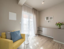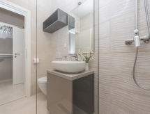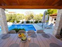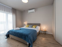 Villa "Malu Dream", med 2 etasjer, bygget i 2018. I en roligt, solrikt posisjon, 300 m fra sjøen, 300 m fra stranden. Privat: tomt 600 m2 (inngjerdet), planter, svømmebasseng kantete, oppvarmt (8 x 3 m, 26 m2, dybde 140 cm, Sesongåpent: 01.Apr. - 01.Nov.) med innebygde trapper. Utendørs dusj, grill. I hbrukt: internetilkobbling, vaskemaskin. Tilgjengelig: sykler (2). Parkering (for 2 biler) ved hbrukt på tomten. Butikk 150 m, restaurant 300 m, småstenstrand 400 m, strand ved klipper 300 m, offentlig badeområde 400 m, betonglagt strand 300 m. Svømmebasseng oppvarmt (ekstra).Interior