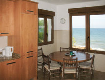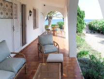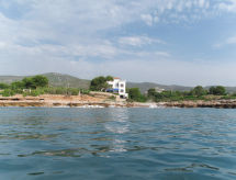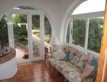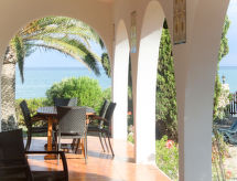 Gårdshus "Margaret", frittstående. 3.5 km fra sentrum av Peñiscola, 130 km fra sentrum av Valencia, i en avskildt posisjon, 20 m fra sjøen. Privat: tomt 2'000 m2 (inngjerdet) med planter og trær, naturlig hage. Pergola, terrasse, hagemøbler, grill. I hbrukt: takterrasse. 1.3 km lang ujevn, smal Tilgang med bil hele veien. Parkering på tomten. Butikk 3.5 km, sandstrand "Peñiscola" 3.5 km småstenstrand 20 m. Turstier Parque Natural 'Sierra de Irta'. Vennligst merk: bil anbefales.Interior