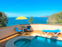 "Maria (NER402)", 3 rom hus 80 m2. Koseligt og træ møblement møbler: stue/spisestue med, åpen peis, spisebord og satelit-TV. Utgang til balkongen. 1 rom med 2 senger. 1 rom med, 1 dobbeltseng (160 cm). Åpent kjøkken (ovn, oppvaskmaskin, 4 keramiske kokeplater, mikrobølgeovn, frys). Dusj/WC. El-oppvarming, airconditioning. Balkong, terrasse delvis dekt. Balkongmøbler grill, liggestoler (2). Hærlig utsikt av havet. Fasiliteter: vaskemaskin, safe, høy barnestol barneseng. Internett (trådløs LAN [WLAN], gratis). Parkeringsplass plass nr 1. Vennligst merk: røykfritt hus. CR/MA/01045 Med inngjerdet tomt. Gir spektakulær utsikt over havet. Det er en balkong. En brannpit er tilgjengelig. Et privat basseng er tilgjengelig. En internettforbindelse er tilgjengelig.- fasiliteter
