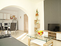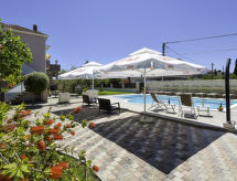 3 rom leilighet 90 m2, på bakkeplan, beliggenhet mot sør. Stue/spisestue med, 1 sovesoffa (150 cm, lengde 190 cm), satelit-TV (flatskjerms TV). Utgang til terrassen. 1 rom med, 1 dobbeltseng (180 cm, lengde 200 cm). 1 rom med 2 senger (90 cm lengde 200 cm). Åpent kjøkken (ovn, 2 keramiske kokeplater, mikrobølgeovn, frys). Dusj/WC. Terrasse 32 m2, dekt. Terrassemøbler. Utsikt av svømmebassenget. Fasiliteter: Internett (trådløs LAN [WLAN], gratis). Egnet for grilling. En mikrobølgeovn er også tilgjengelig.- fasiliteter
