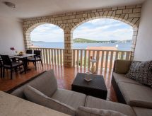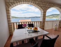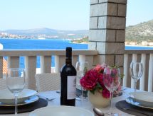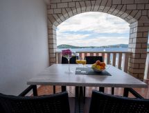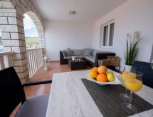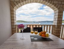 Razanj 10 km fra Rogoznica: Fin leilighetshus "Marina". I området Ljoljinica, i en roligt, høyt posisjon, 40 m fra sjøen. Fellesbruk: utendørs dusj, terrasse, hagemøbler, grill, parkering ved hbrukt på tomten, felles garasje. Butikk, restaurant 200 m, strand ved klipper 40 m. Vennligst merk: Det er flere lignende leiligheter i samme hus.Interior