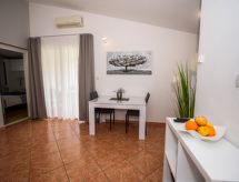 Razanj 10 km fra Rogoznica: Fin leilighetshus "Marina". I området Ljoljinica, i en roligt, høyt posisjon, 40 m fra sjøen. Fellesbruk: utendørs dusj, terrasse, hagemøbler, grill, parkering ved hbrukt på tomten, felles garasje. Butikk, restaurant 200 m, strand ved klipper 40 m. Vennligst merk: Det er flere lignende leiligheter i samme hus.Interior