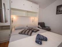2 rom leilighet 32 m2 i 2nd etasje. Vakkert og smakfullt møbler: stue/spisestue med, 1 dobbel sovesoffa (160 cm, lengde 200 cm), satelit-TV (flatskjerms TV), air-conditioning. Utgang til balkongen. 1 rom med, 1 dobbeltseng (160 cm, lengde 200 cm). Åpent kjøkken (2 keramiske kokeplater, mikrobølgeovn, frys, elektrisk kaffemaskin). Dusj/WC. Airconditioning (ekstra). Balkong 6 m2. Terrassemøbler. Fasiliteter: Internett (trådløs LAN [WLAN], ekstra). For å holde det kult om sommeren, har dette feriehuset aircondition. En overbygd parkering er tilgjengelig.- fasiliteter
