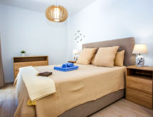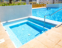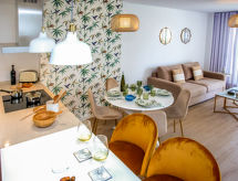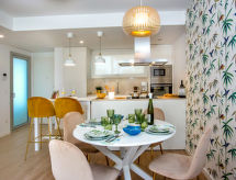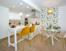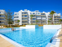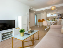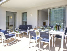 Meget stor, meget moderne leilighetshus "Marina Real Denia", bygget i 2021. I området 500 m fra sentrum av Dénia, i en roligt, solrikt posisjon, 350 m fra sjøen, 750 m fra stranden. Fellesbruk: stor, vakker, velholdt hage med plen og trær, 2 badebasseng firkantet (30 x 10 m, dybde 80- 210 cm dyp, Sesongåpent: 01.Jan. - 31.Des.) med innbygdetrapper. Barnebasseng, utendørs dusj, boblebad, lekeplass (rutsjebane, huske). Privat: terrasse, hagemøbler. I hbrukt: solarium. Felles garasje nr 26. Supermarked 400 m, restaurant 500 m, sandstrand "Marineta Cassiana" 700 m. Sporthavn, surfeskole, seileskole 500 m. Eieren godtar ikke noen ungdomsgrupper.Interior