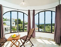 "Maryline", 3 rom hus 70 m2 på 2 etasjer, i øverste etasje. Enkelt og praktiskt møbler: stue/spisestue med, satelit-TV. Utgang til terrassen. 1 rom med, 1 dobbeltseng og air-conditioning. 1 rom med 2 senger og air-conditioning. Åpent kjøkken (stekeovn, oppvaskmaskin, mikrobølgeovn). Utgang til verandraen. Bad/WC. Oppvarmingsalternativ. Terrasse delvis dekt. Terrassemøbler, grill, liggestoler. Vakker utsikt av havet og landskapet. Fasiliteter: vaskemaskin. Internett (trådløs LAN [WLAN], gratis). Parkeringsplass (inngjerdet). Vennligst merk: velegnet for familier. Røykfri bolig. Bare TV FR. AT-469213-A Bad i huset. Utsikt over havet og beliggenheten er nydelig. Det er en terrasse. Den har en baby seng. Et privat basseng er tilgjengelig. Den har et trådløst lokalnettverk (WLAN).- fasiliteter