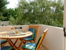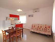 2 rom leilighet 35 m2, på bakkeplan, beliggenhet mot sør. Vakkert og koseligt møbler: stue/spisestue med, 1 dobbel sovesoffa (130 cm, lengde 200 cm), satelit-TV (flatskjerms TV), air-conditioning. Utgang til terrassen. 1 rom med, 1 dobbeltseng (2 x 80 cm, lengde 200 cm). Åpent kjøkken (2 kokeplater, ovn, frys). Dusj/WC. Terrasse 8 m2. Terrassemøbler. Fasiliteter: Internett (trådløs LAN [WLAN], gratis). En terrasse er tilgjengelig. Passer til grill. En ovn er tilgjengelig.- fasiliteter