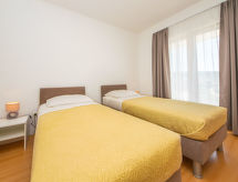 3 rom leilighet 50 m2 i 1st etasje. Vakkert møbler: stue/spisestue med, satelit-TV. Utgang til terrassen. Inngang med, air-conditioning. 1 rom med, 1 dobbeltseng (160 cm, lengde 200 cm). Utgang til terrassen. 1 rom med 2 senger (90 cm lengde 200 cm). Åpent kjøkken (4 kokeplater, ovn, mikrobølgeovn, frys, elektrisk kaffemaskin). Bad/bidé/WC. Varmluftsoppvarming. Terrasse 20 m2, dekt. Terrassemøbler. God utsikt av havet. Fasiliteter: vaskemaskin. Internett (trådløs LAN [WLAN], gratis). Vennligst merk: egen inngang. Et badekar er tilgjengelig. Passer til grill. Et basseng er tilgjengelig. Den har en Internett-tilkobling. Den har et trådløst lokalnettverk (WLAN).- fasiliteter