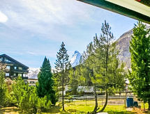 1 rom leilighet 33 m2 i 1st etasje, beliggenhet mot sør. Stue/spisestue med, 2 neddragbare klappsenger, TV og radio. Kjøkkenkrok sammen med ingangen (ovn, 4 keramiske kokeplater, elektrisk kaffemaskin). Bad/WC. Balkong. Terrassemøbler. Vakker utsikt av Matterhorn. Fasiliteter: Internett (trådløs LAN [WLAN], gratis). Vennligst merk: røykfri bolig. Bad i huset. For spørsmål og tvetydigheter, vennligst kontakt resepsjonen. Det er en internettforbindelse. Huset er også utstyrt med en ovn.- fasiliteter