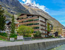 1 rom leilighet 33 m2 i 4th etasje, beliggenhet mot sør. Stue/spisestue med, 2 neddragbare klappsenger og TV (flatskjerms TV), radio. Kjøkkenkrok sammen med ingangen (3 kokeplater, ovn, oppvaskmaskin, elektrisk kaffemaskin). Bad/WC. Balkong. Terrassemøbler. Fasiliteter: Internett (trådløs LAN [WLAN], gratis). Vennligst merk: røykfri bolig. Beautiful view of the Matterhorn. Et badekar er tilgjengelig. Eieren forbyr røyking i bygningen. Den har en balkong.- fasiliteter