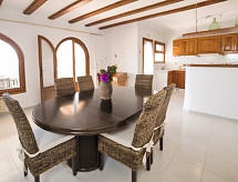 Benissa Costa: Fin, koselig, komfortabel villa "Mi Sueno", med 2 etasjer. 4.9 km fra sentrum av Moraira, 6.7 km fra sentrum av Calpe, i distriktet Buenavista, i en roligt, solrikt posisjon boligområde, 1.7 km fra stranden. Privat: tomt, vakker hage, svømmebasseng (4 x 8 m, dybde 130- 185 cm dyp, Sesongåpent: 01.Jan. - 31.Des.). Utendørs dusj, bassenghus med kjøleskap og kokeplate, hagemøbler, grill, grillplass. I hbrukt: vaskemaskin, oppvarming kun tilgjengelig fra 01.11. til 30.04.. Overdekket, parkering ved hbrukt. Butikk 6 km, daglivarehandel 6 km, supermarked 6 km, restaurant 1.5 km, sandstrand "Playa de La Fustera" 4.2 km, badebukt 1.7 km. Golfbane 4.1 km. Attraksjoner i nærheten: Aqualandia, Mundomar, Terra Mítica, Terra Natura, Benidorm Palace (Benidorm).Interior