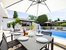 "Mi Sueno", 5 rom villa på 2 etasjer. Romlig, komfortabelt og vakkert møbler: stue/spisestue med, satelit-TV, digital TV og flatskjerms TV. Utgang til terrassen. 1 rom med, 1 dobbeltseng, air-conditioning og varmluft oppvarming. Utgang til terrassen, til badebassenget. Kjøkken (ovn, oppvaskmaskin, 4 keramiske kokeplater, brødrister, vannkoker, mikrobølgeovn, frys, elektrisk kaffemaskin, kombinert mikrobølgeovn). Utgang til hagen. Dusj/bidé/WC, dobbel servant. øverste etasje: åpen stor stue/spisestue. Utgang til terrassen. 1 rom med, 1 dobbeltseng, air-conditioning og varmluft oppvarming. 1 rom med, 1 dobbeltseng, bad/WC, dobbel servant, air-conditioning og varmluft oppvarming. Åpent kjøkken (3 kokeplater, ovn). Dusj/WC. Terrassemøbler, grill. Vakker utsikt av havet. Fasiliteter: vaskemaskin, strykejern, høy barnestol barneseng for barn opp til 2 år, hårføner. Internett (trådløs LAN [WLAN], gratis). Parkeringsplass (overdekt) ved hbrukt. Smart TV. AT-454828-A Dessuten er de bortskjemt med en klar utsikt over havet. Egnet for grilling. En overbygd parkering er tilgjengelig. Et privat basseng er tilgjengelig.- Aktiviteter i nærheten