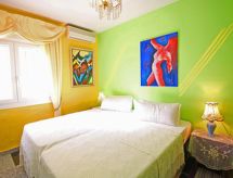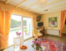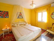 "Mia", 3 rom villa 120 m2. Praktiskt og komfortabelt møbler: stue/spisestue med, digital TV. Utgang til terrassen. 1 rom med, 1 dobbeltseng, air-conditioning og varmluft oppvarming. 1 rom med, 1 dobbeltseng, air-conditioning og varmluft oppvarming. Kjøkken (ovn, oppvaskmaskin, 4 gassbrennere, brødrister, vannkoker, mikrobølgeovn, elektrisk kaffemaskin). Dusj/WC, dobbel servant. Stor terrasse. Terrassemøbler. God utsikt av området og byen. Fasiliteter: vaskemaskin, strykejern, høy barnestol barneseng for barn opp til 1 år, hårføner. Internett (trådløs LAN [WLAN], gratis). Parkeringsplass. AT-451918-A Dusj er forfriskende og en dusj er til stede. Kom inn og føl deg den forfriskende brisen i klimaanlegget. Den har en parkeringsplass. Et privat basseng er tilgjengelig. En vaskemaskin er tilgjengelig for bruk. Et trådløst lokalnettverk (WLAN) er tilgjengelig.- fasiliteter