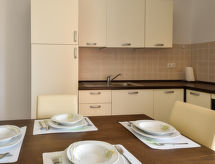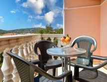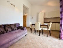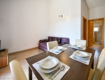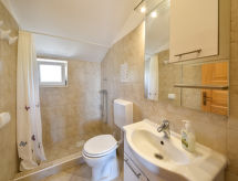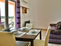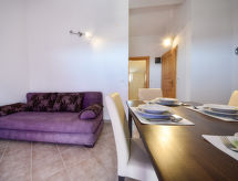 2 rom leilighet 30 m2 i 2nd etasje, beliggenhet mot sør-vest. Stue/spisestue 16 m2 med, 1 dobbel sovesoffa (150 cm, lengde 200 cm), satelit-TV (flatskjerms TV), air-conditioning. Utgang til terrassen. 1 rom med skråtak Lav dørhøyde 180 cm 250 cm med, 1 dobbeltseng (160 cm, lengde 200 cm). Åpent kjøkken (4 kokeplater, stekeovn, frys). Dusj/WC. Terrasse 7 m2, dekt. Terrassemøbler. God utsikt av havet. Fasiliteter: Internett (trådløs LAN [WLAN], gratis). Vennligst merk: røykfritt hus. For å holde det kult om sommeren, har dette feriehuset aircondition.- fasiliteter