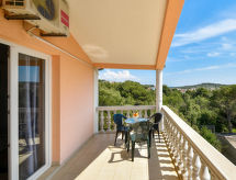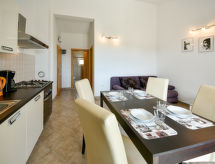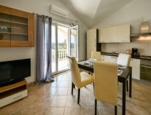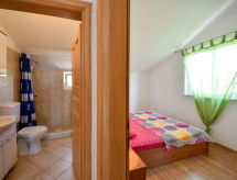 2 rom leilighet 30 m2 i 2nd etasje, beliggenhet mot sør-vest. Stue/spisestue 16 m2 med, 1 dobbel sovesoffa (150 cm, lengde 200 cm), satelit-TV (flatskjerms TV), air-conditioning. Utgang til terrassen. 1 rom med skråtak Lav dørhøyde 180 cm 250 cm med, 1 dobbeltseng (160 cm, lengde 200 cm). Åpent kjøkken (4 kokeplater, stekeovn, frys). Dusj/WC. Terrasse 7 m2, dekt. Terrassemøbler. God utsikt av havet. Fasiliteter: Internett (trådløs LAN [WLAN], gratis). Vennligst merk: røykfritt hus.- fasiliteter