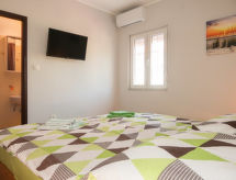 3 rom leilighet 60 m2 i 1st etasje. Passer for 6 voksne + 1 barn. Delvis renovert i 2019, komfortabelt møbler: 1 rom med, 1 dobbeltseng (2 x 90 cm, lengde 200 cm), 1 klappseng, dusj/WC, satelit-TV og air-conditioning. Utgang til balkongen. 1 rom med, 1 dobbeltseng (2 x 90 cm, lengde 200 cm), dusj/WC, satelit-TV og air-conditioning. 1 rom med, 1 dobbeltseng (2 x 90 cm, lengde 200 cm), dusj/WC, satelit-TV og air-conditioning. Utgang til balkongen. Spisestue med, satelit-TV. Utgang til verandraen. Åpent kjøkken (ovn, oppvaskmaskin, 4 keramiske kokeplater, brødrister, vannkoker, mikrobølgeovn, frys, elektrisk kaffemaskin). 2 balkonger 5 m2, plen 10 m2. Terrassemøbler, balkongmøbler grill. Delvis utsikt av havet. Fasiliteter: myggnett, høy barnestol barneseng (ekstra). Internett (trådløs LAN [WLAN], gratis). Vennligst merk: røykfritt hus. Kjæledyr / hund tillatt 1 kjæledyr / hund tillatt. Brannslukkningsapparat. Forbruket av tobakksprodukter er ikke tillatt. Kom inn og føl deg den forfriskende brisen i klimaanlegget. Hvis været ikke spiller, er det også en TV.- fasiliteter