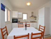 4 rom hus 85 m2, beliggenhet mot sør. Stue/spisestue med, satelit-TV (flatskjerms TV), DVD og air-conditioning. Utgang til terrassen. 1 rom med, 1 dobbeltseng (160 cm, lengde 200 cm). Utgang til terrassen. 1 rom med, 1 dobbeltseng (140 cm, lengde 200 cm). 1 rom med 1 seng (90 cm lengde 190 cm). Åpent kjøkken (4 kokeplater, ovn, oppvaskmaskin, mikrobølgeovn, elektrisk kaffemaskin). Dusj/WC. Terrasse 24 m2 delvis dekt. Terrassemøbler. Hærlig utsikt av havet. Fasiliteter: barneseng. Internett (trådløs LAN [WLAN], gratis). Utsikt over havet og beliggenheten er nydelig. Hva ville et moderne kjøkken være uten mikrobølgeovn? Den som selvfølgelig er tilgjengelig.- fasiliteter